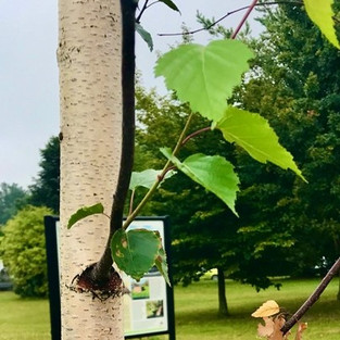 In early 2020 more saplings arrived, eight of them on the Green near Woodcote Road and others on Woodmansterne Lane. At the council’s request, members of the committee and their families have been watering them three times a week. You can recognise this year’s planting by the shiny supporting poles. On the Green itself, the new planting is of hornbeam and sliver birch. Note the white bark of the birch and the differences in the leaves. Below you can see (from left to right) two hornbeam saplings, the foliage of a hornbeam, and a silver birch.